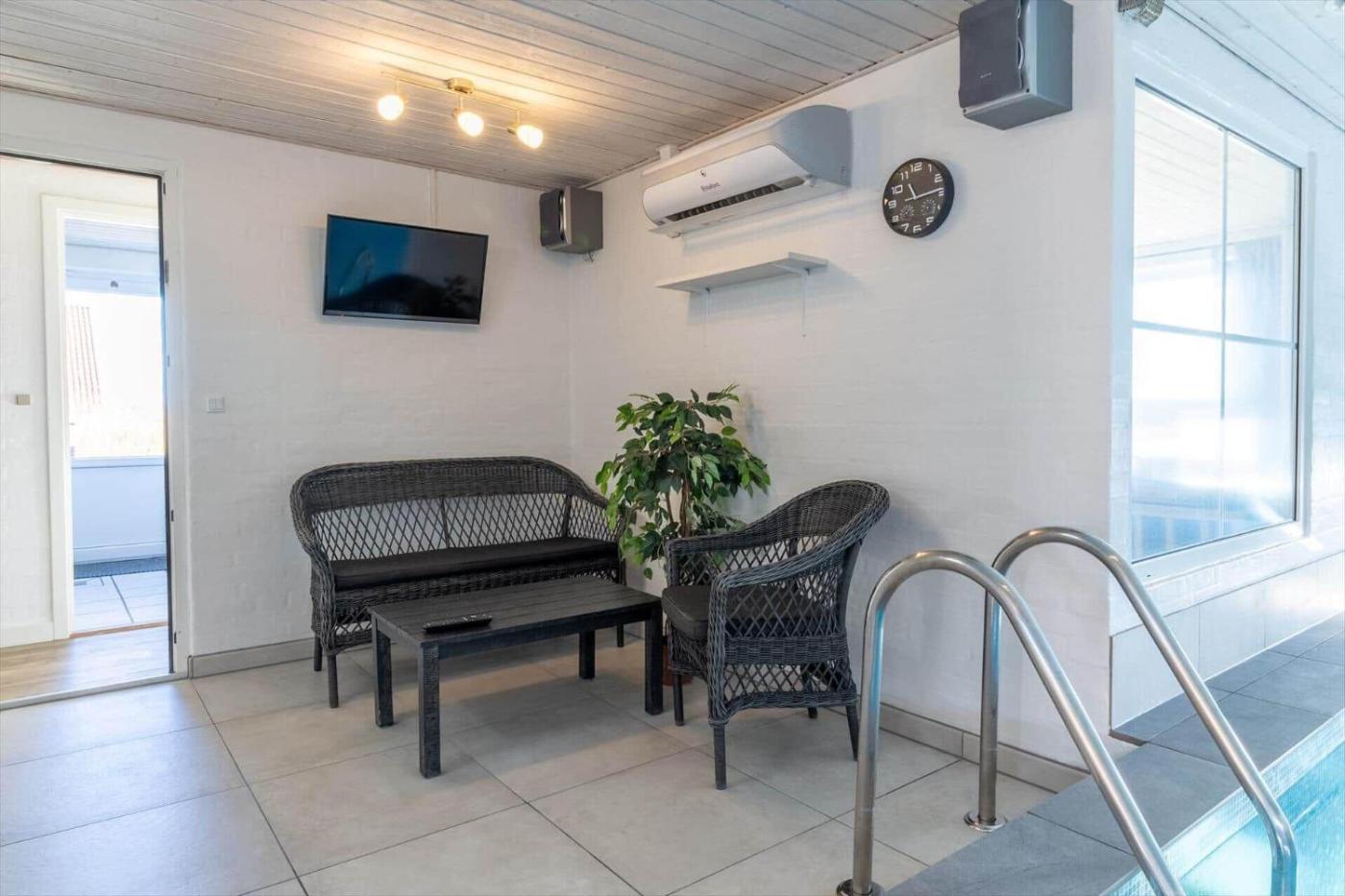 Holiday Home. The hot tub and sauna are the standout features of this holiday home. This spacious holiday home comes with 4 bedrooms, kitchen, a terrace and 2 bathrooms with a shower. Guests will find a stovetop, a refrigerator, a dishwasher and an oven in the kitchen. The holiday home also includes a barbecue. This holiday home has a washing machine, a tea and coffee maker, a TV and outdoor furniture. The unit has 6 beds.